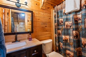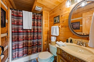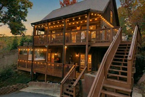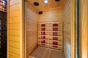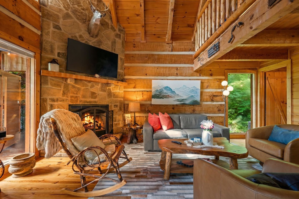 Wake up to panoramic Smoky Mountain views from your king loft suite, then unwind in a private infrared sauna, soak in a 5-person hot tub framed by a stunning plant wall or challenge the family to 2,000+ arcade games — all without leaving the cabin.